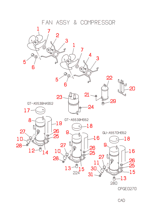FDCP224HKXE2B FAN ASSY AND COMPRESSOR
